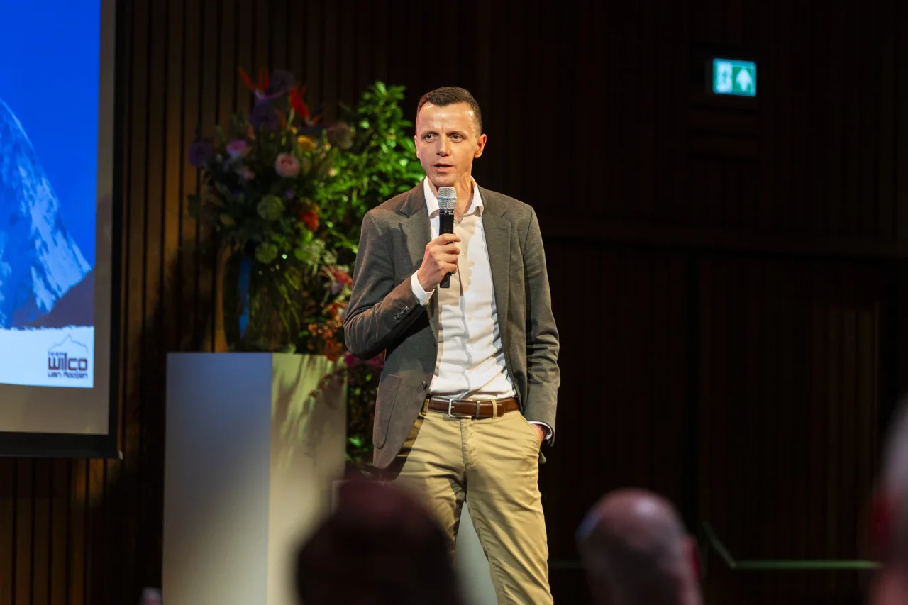 In het Parktheater deelde Wilco zijn meest extreme ervaringen en expeditielessen, van de hoogste toppen tot zijn diepste dalen. Kenmerkende thema’s in zijn levensverhaal: wilskracht, creativiteit en doorzettingsvermogen, maar ook teamgeest, persoonlijke versus collectieve doelen en verbinding. Wilco: “Of het nou om bergbeklimmen gaat, of een onderneming runnen, uiteindelijk gaat het om de mens.” Een invalshoek die ook voor VB Groep heel relevant is en nauw aansluit bij onze kernwaarden.