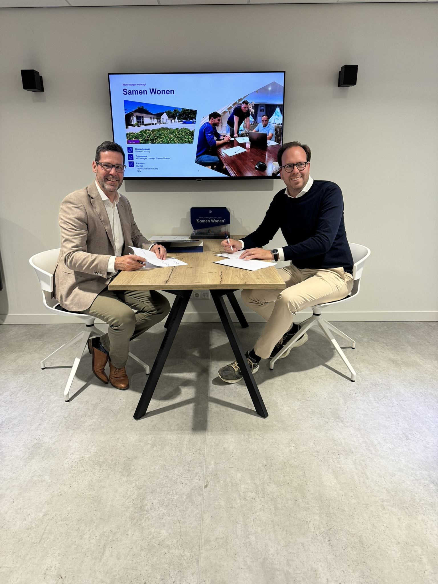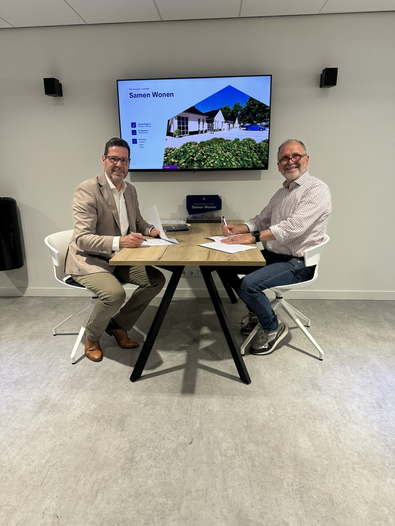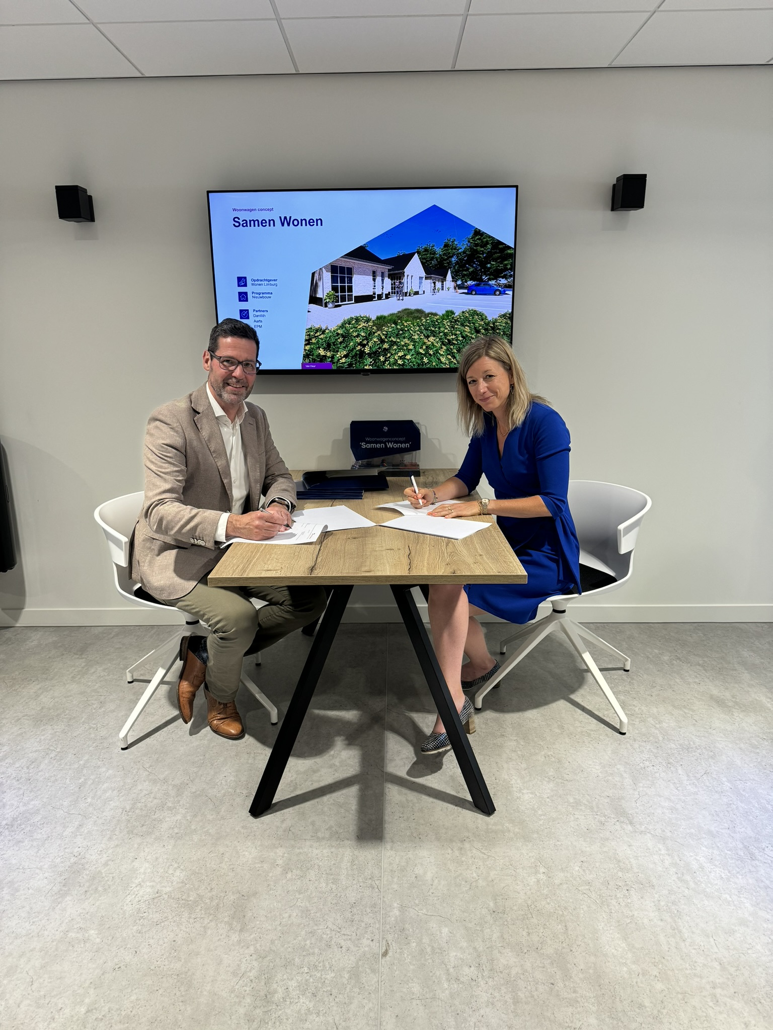 Gisteren markeerde een belangrijke mijlpaal. Marc Pluijmakers van Van Heur en Femke Overbeek van Wonen Limburg ondertekenden de raamovereenkomst voor het eerste project met het innovatieve woonwagenconcept ‘Samen Wonen’. Deze samenwerking is een belangrijke stap in het bieden van hoogwaardige en passende huisvesting, met respect voor de cultuur en identiteit van de woonwagengemeenschap.