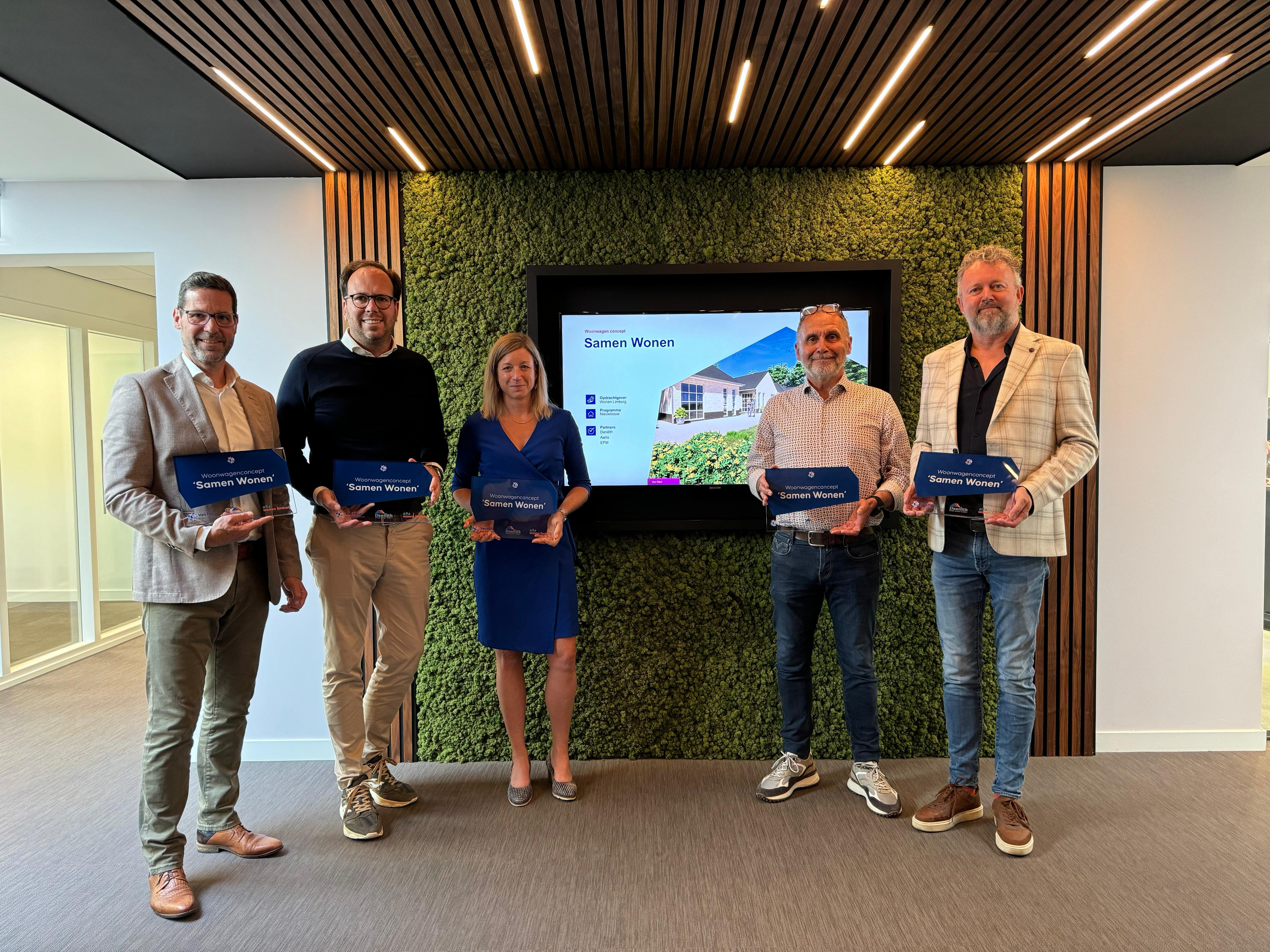 Naast Marc en Femke, ondertekenden ook Lucas Delmulle van Danilith, Anton van der Sanden van W-installateur Aarts en Wil Paulus van E-installateur EPM de overeenkomst als bouwpartners van Van Heur. In dit bouwteam zullen zij gezamenlijk het eerste ‘Samen Wonen’ project realiseren. Het project richt zich op het creëren van woonruimtes die de specifieke behoeften en cultuur van de woonwagengemeenschap ondersteunen en respecteren. De werkzaamheden starten nog dit jaar.